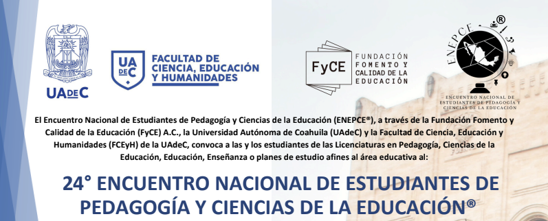 La Universidad Pedagógica Nacional Unidad 113 León invita a toda la comunidad estudiantil a participar en la CONVOCATORIA INTERNA para la Beca «24° Encuentro Nacional de Estudiantes de Pedagogía y Ciencias de la Educación» que se llevara a cabo del 14 al 16 de mayo en la Universidad Autónoma de Coahuila. Si deseas consultar la convocatoria.